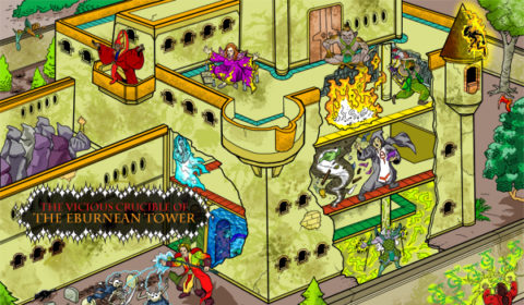 The Eburnean Tower has stood for centuries as a symbol of arcane learning, sorcerous power, and the dominion of man over magic. Tonight all that will be challenged. Rivals, saboteurs, and the Tower's own ruthless students all threaten this bastion of scholarship and arcane power. Something has got to give, and there is no way to know what will survive this Vicious Crucible.
