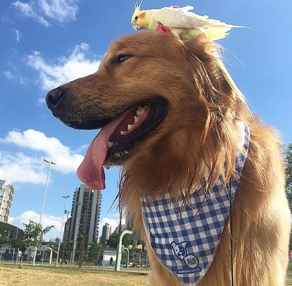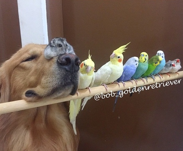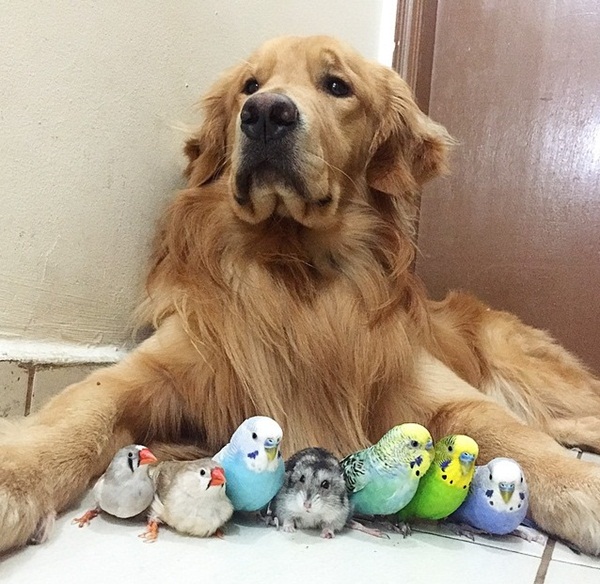 6. โกลเด้น รีทรีฟเวอร์ เป็นสุนัขที่มีจิตใจโอบอ้อมอารีและมักจะเป็นฝ่ายดูแลสัตว์ตัวอื่นอยู่เสมอ ไม่เว้นแม้แต่แมวที่ถือเป็นคู่กัดของสุนัขมาแต่ไหนแต่ไร