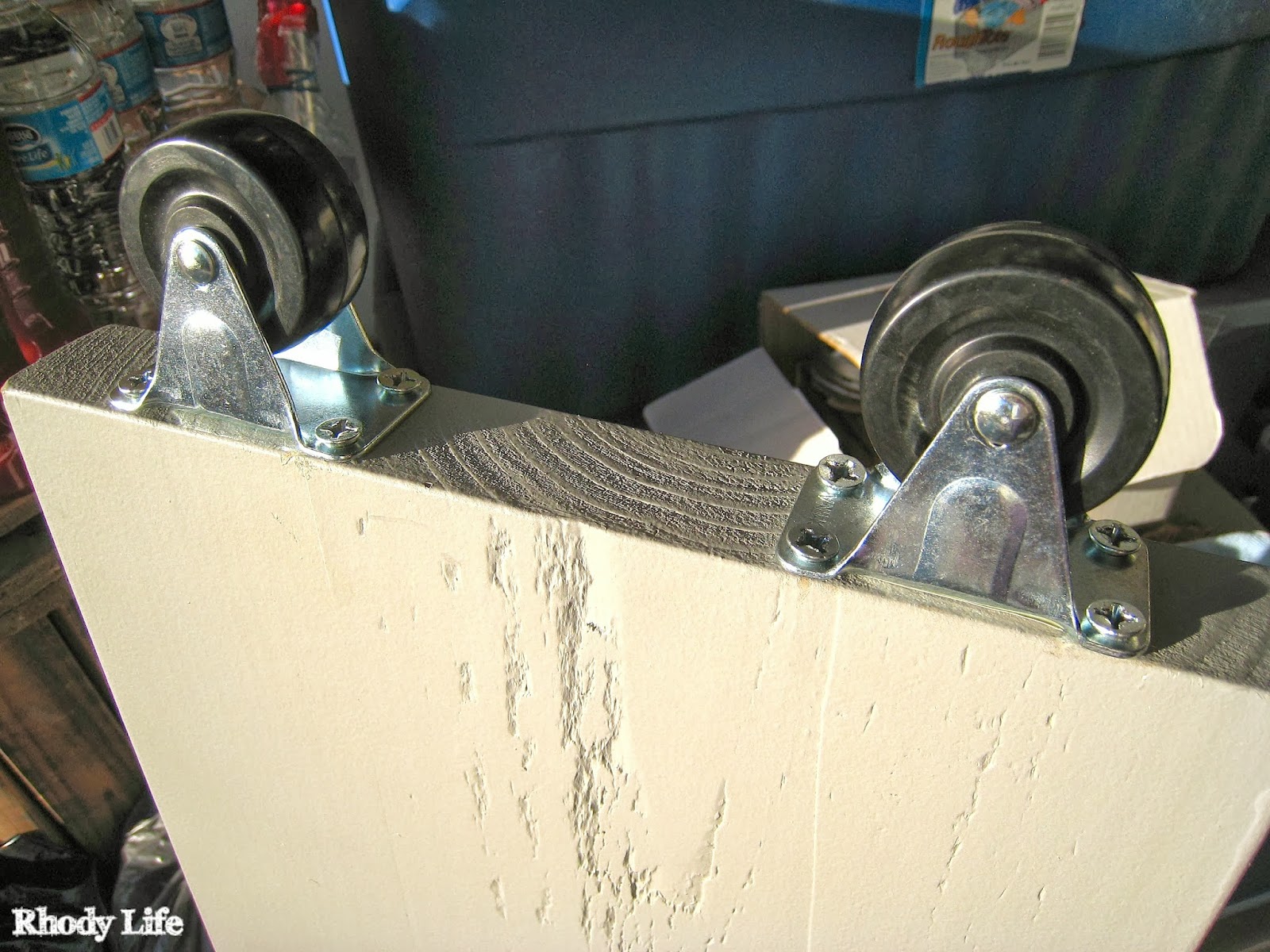 On the bottom of your leg boards, measure how far inside you want your casters to be, and using a pencil, mark inside the screw holes so you know where to drill your pilot holes.