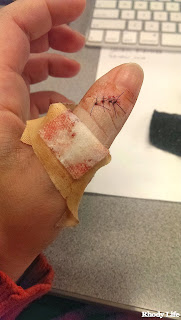 So yeah, at 2:30pm on Christmas Eve, we jumped in the car and sped to the emergency room, where I ended up with a tetanus shot, two shots for numbing my thumb since the first one didn't work, and 4 stitches.
