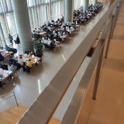 环境“华丽”、“幽雅”,功能“齐全”,藏书“丰富”。1、2楼为“公共服务与学术交流”所用;3、4楼以普通文献借阅区为主,人总是“坐得满满的”,“早早就来占座”的大部分是学生,或写作业,或写论文;5、6楼是“专题阅览部”、“音像阅览部”和“数字化阅览部”,“安静怡人”,氛围“不错”。