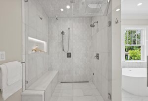Gorgeous and ready to tour! Sophisticated new build by Laurence Cafritz Builders and designed by GTM Architects, on over 18,000 sq ft lot in the heart of Edgemoor. Gracious floor plan flooded with natural light, main level home office, 5 en-suite bedrooms on 2nd level, inclusive of primary bedroom with large, private balcony. Finished lower level with home gym, three-car attached garage, huge level rear yard with Southern exposure and plenty of room for a pool. Elevator to all levels. Finest details throughout from wide oak hardwood flooring, to beautiful hardware, plumbing fixtures and light fixtures. Just a short stroll to the Edgemoor Club, Metro and downtown shops and restaurants. Whitman cluster.
