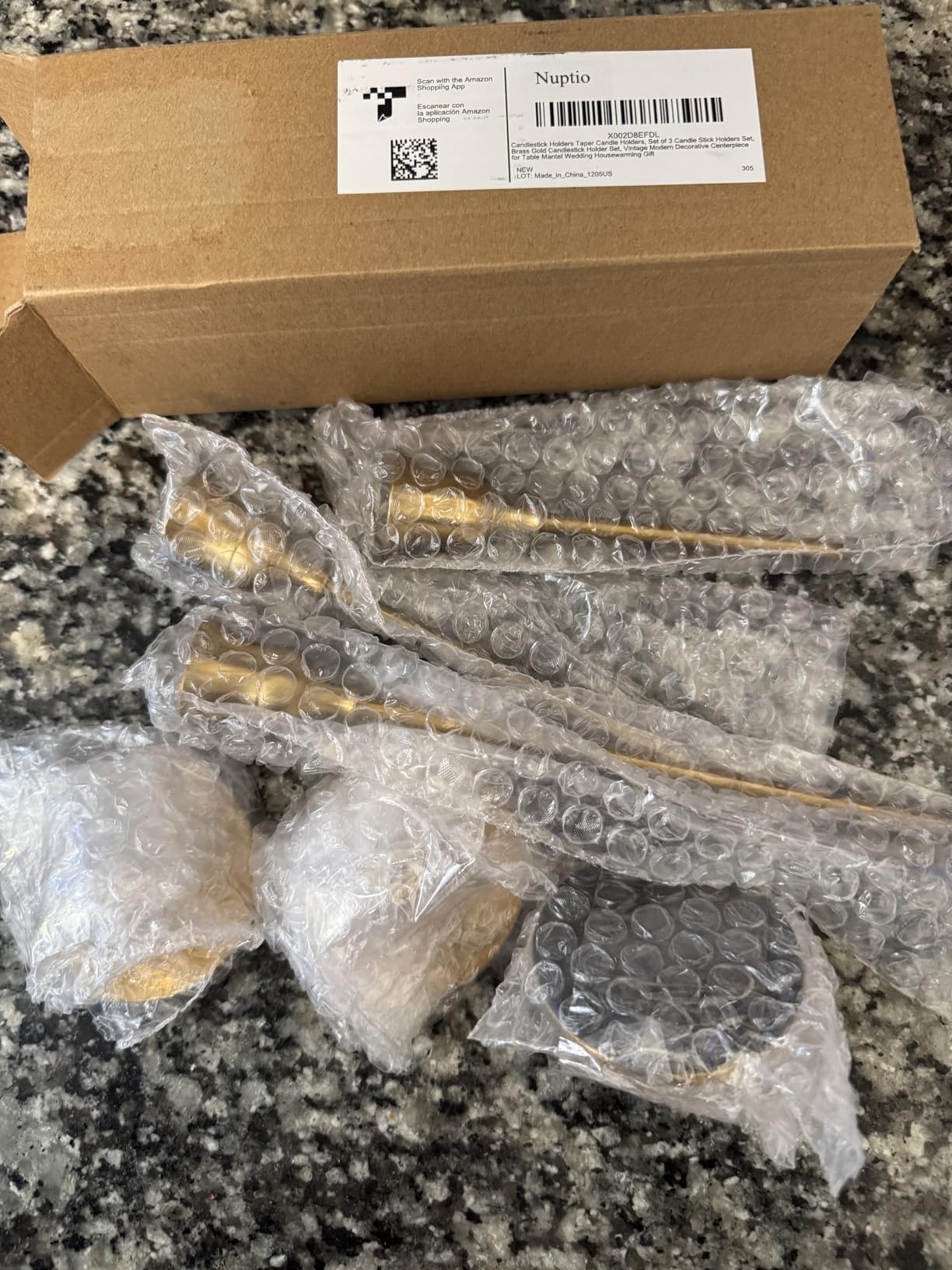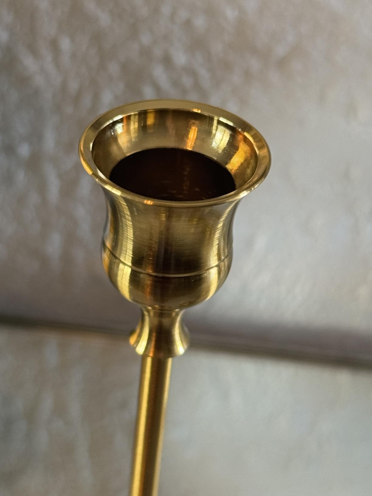 Reviewed in the United States on February 13, 2026Came securely packaged, no damages, no warping or weird smell. Beautiful brass color and weighted nicely. Varied height is balanced. Well made. Fits taper candles without effort. Very happy with this purchase.