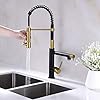 Kitchen Faucet,Pull Down Sprayer Kitchen Sink Faucet, High Arc Pull Out Kitchen Sink Faucets,Black and Gold Springs Faucet