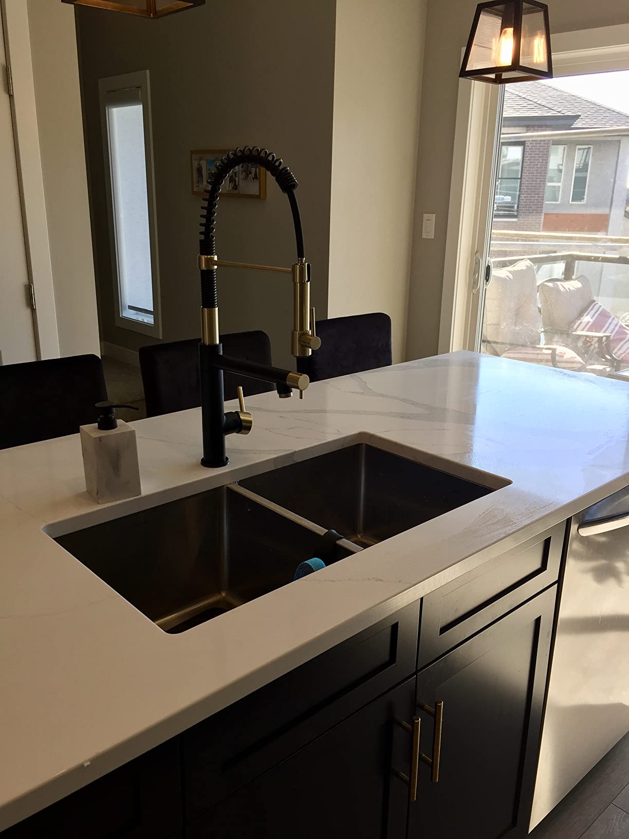 TQKAG Kitchen Faucet with Pull Down Sprayer Black and Brushed Gold Single Handle Pull Out Kitchen Sink Faucets Stainless Steel.FREE Shipping by AmazonGet it by Saturday, May 2