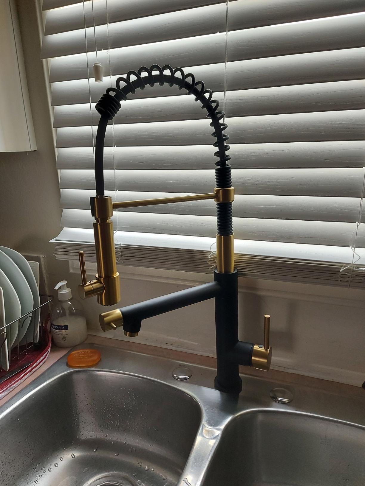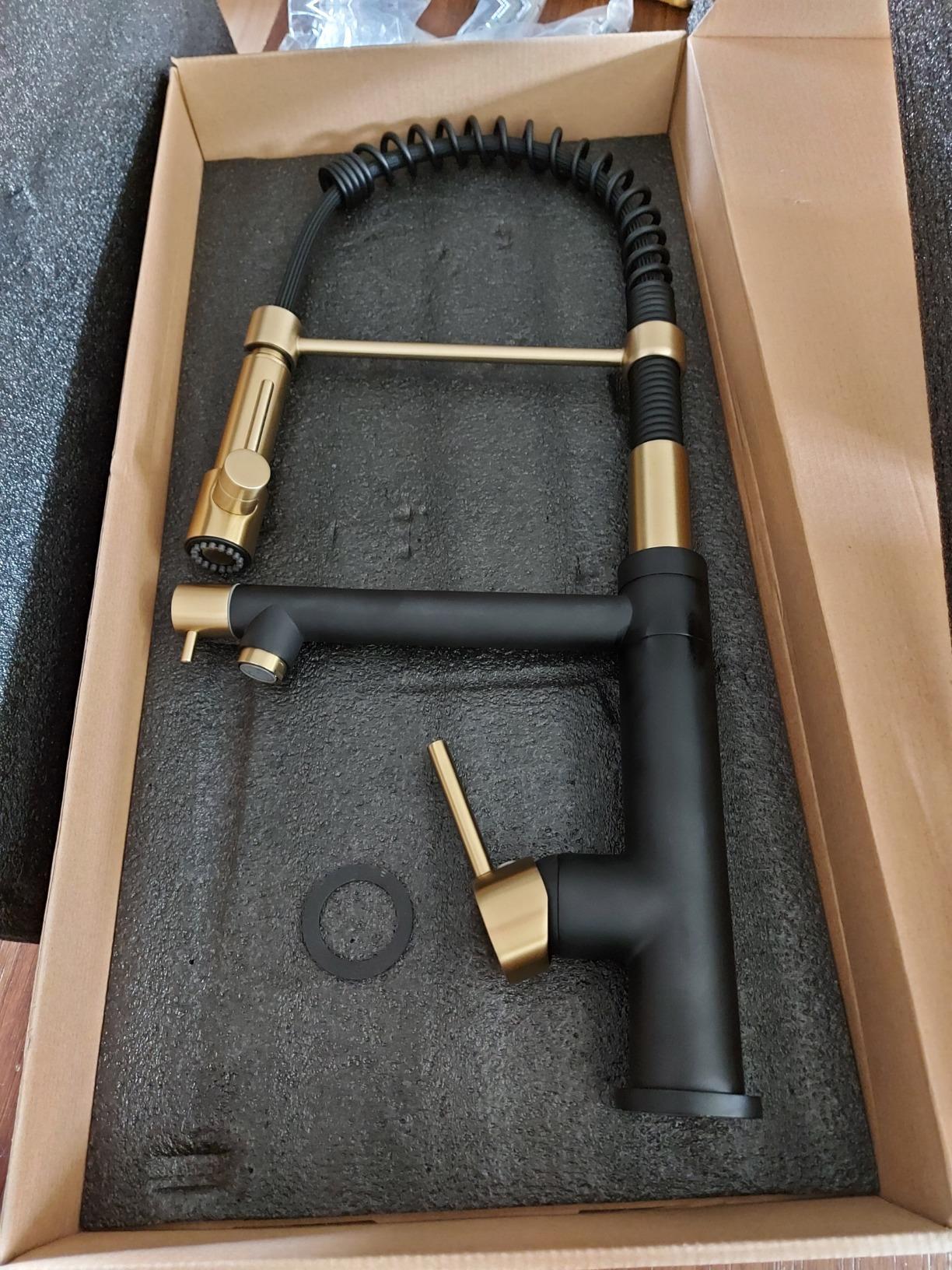 Product Summary: Kitchen Faucet,Pull Down Sprayer Kitchen Sink Faucet, High Arc Pull Out Kitchen Sink Faucets,Black and Gold Springs Faucet