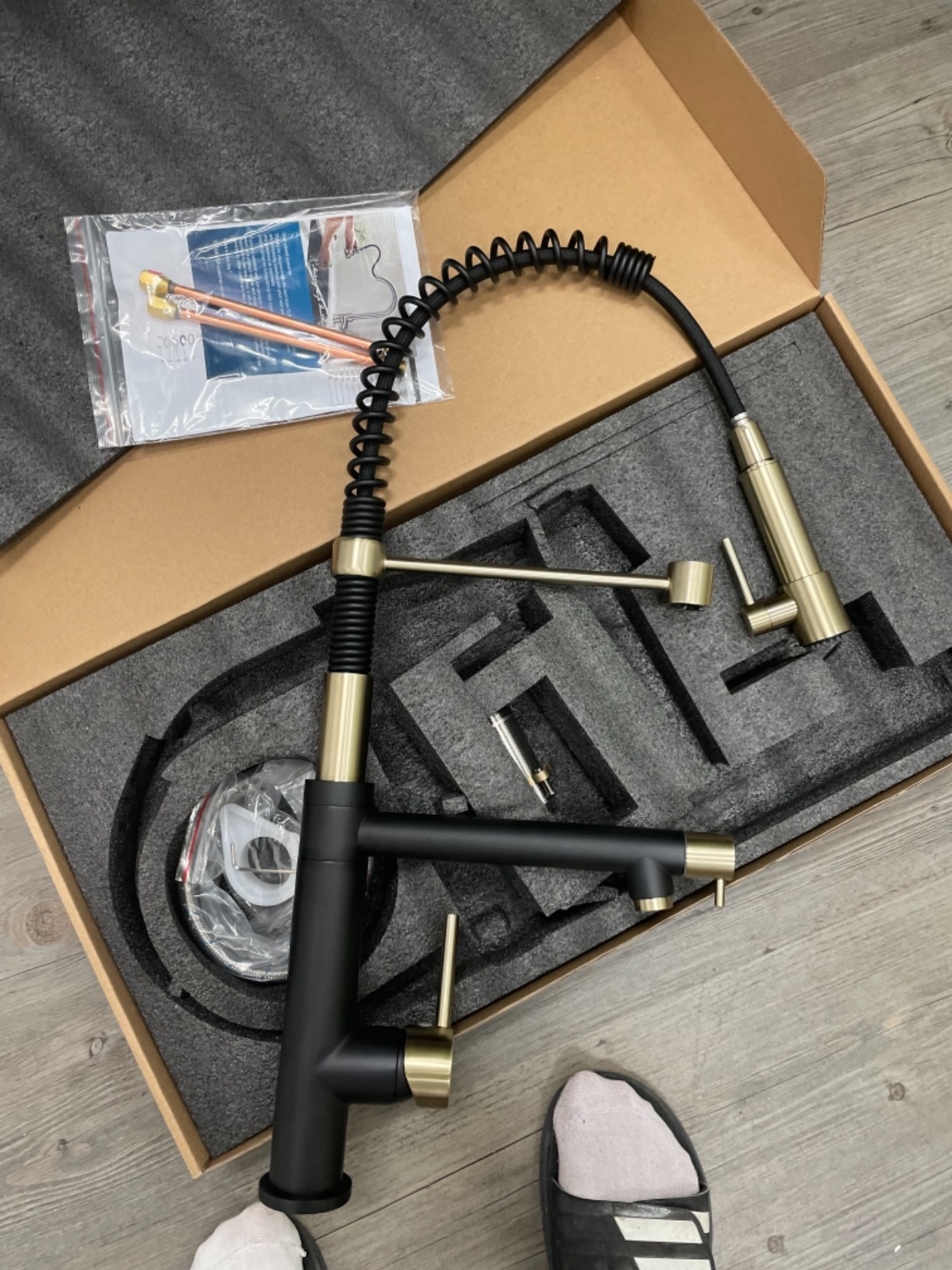 Vraiment j'adore le look ,,très bien emballé la couleur est très conforme au photo l'installation se fait très facilement l'eau s'écoule très bien ..bonne pression la seule petite chose qui me déplaît un peu s'est que il est un peu raide quand on veut abaisser le robinet avec le "ressort" mais sinon un excellent achat