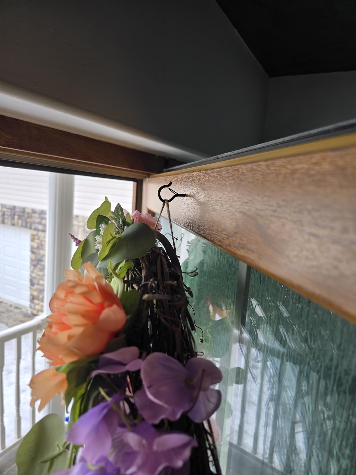 I was looking for a hook for our front door. We didn't want anything that stood out. We wanted it to support different times of the year for a decorative wreath. My husband predrilled a hole, this screw seamlessly screwed into the door by hand. I love that it can support up to 40lbs. It was perfect!
