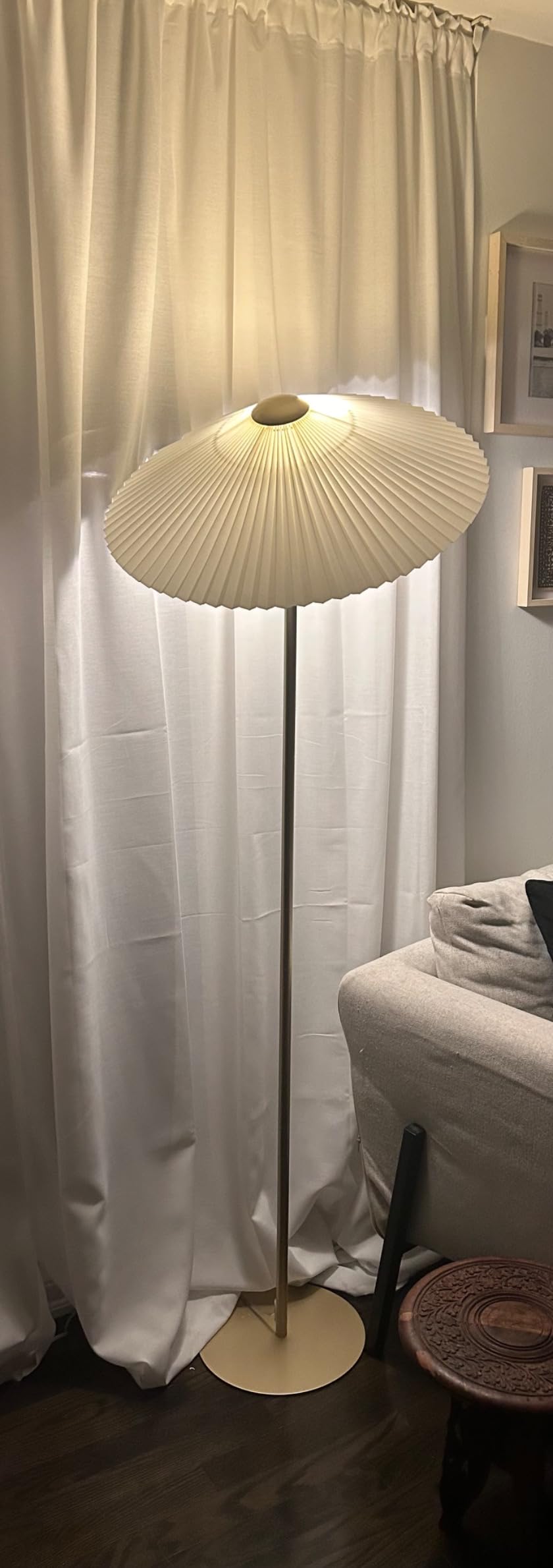 Product Summary: KUNJOULAM Pleated Floor Lamp,Gold Pole Floor Lamps for Living Room, Simple Design Tall Lamp with Beige Lampshade, Standing Lamp for Living Room, Office, Home