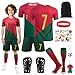 - ⚽️[Luxury Football Kits for Kids]: You will receive 1 short-sleeved football shirt, 1 shorts, 1 professional sports sock, 1 leg guard, 1 personalized acrylic keychain + 1 football-shaped keychain, 1 cool tattoo sticker, and 1 portable non-woven storage bag.