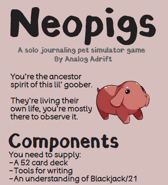 Take the role as an ancestor spirit to divine your descendant's childhood, examining their most important moments to learn who they will become in the future, using blackjack to randomly generate events from your Neopig's life.