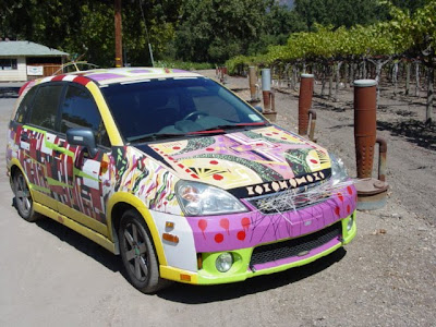I've been hijacked by polka dots. Temps and such said I could paint on my car this weekend. I was planning on painting the paisley pattern on the right rear panel. But once I sat down to it, it all came out polka dots. I'm still not sure about it. But it was want I wanted to paint at the time. It looks good in headlights. I don't know if I'm going to overlay the dots with the flower pattern I had planned for this panel. I'm sorta scratching my head.But I like the dots. I'm looking forward to driving my art car around and getting some reactions. I'm thinking of adding more colors of dots.