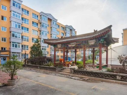 小区每个楼栋之间都有绿化和散步休息区,小区中间位置有一个地下车库入口,小区东边有一个凉亭.