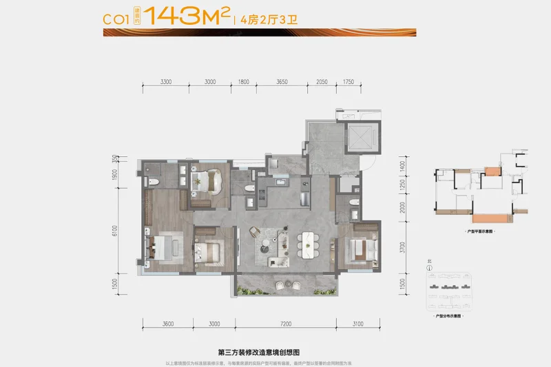3 室 3 厅 1 卫