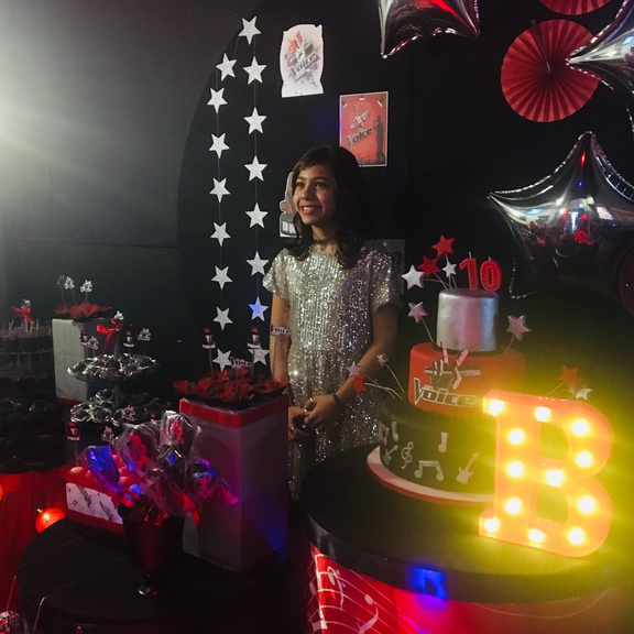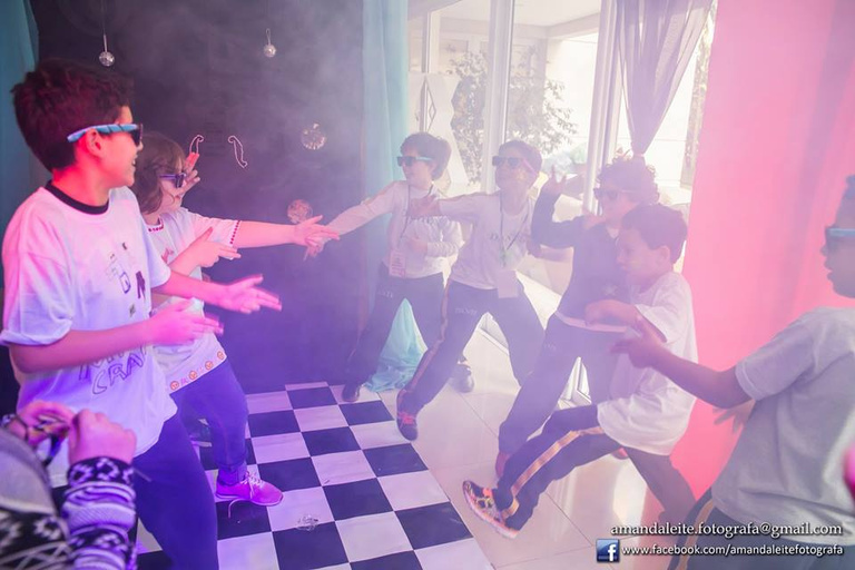 Customização de figurinos, perucas, globos espelhados, microfone e até tapete vermelho tem nessa festa.