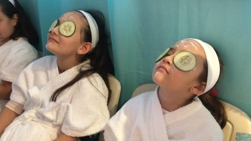 Em nossa programação tem uma oficina de customização de chinelos, além de todos os itens de spa: cabelo, make, pepinos nos olhos.
