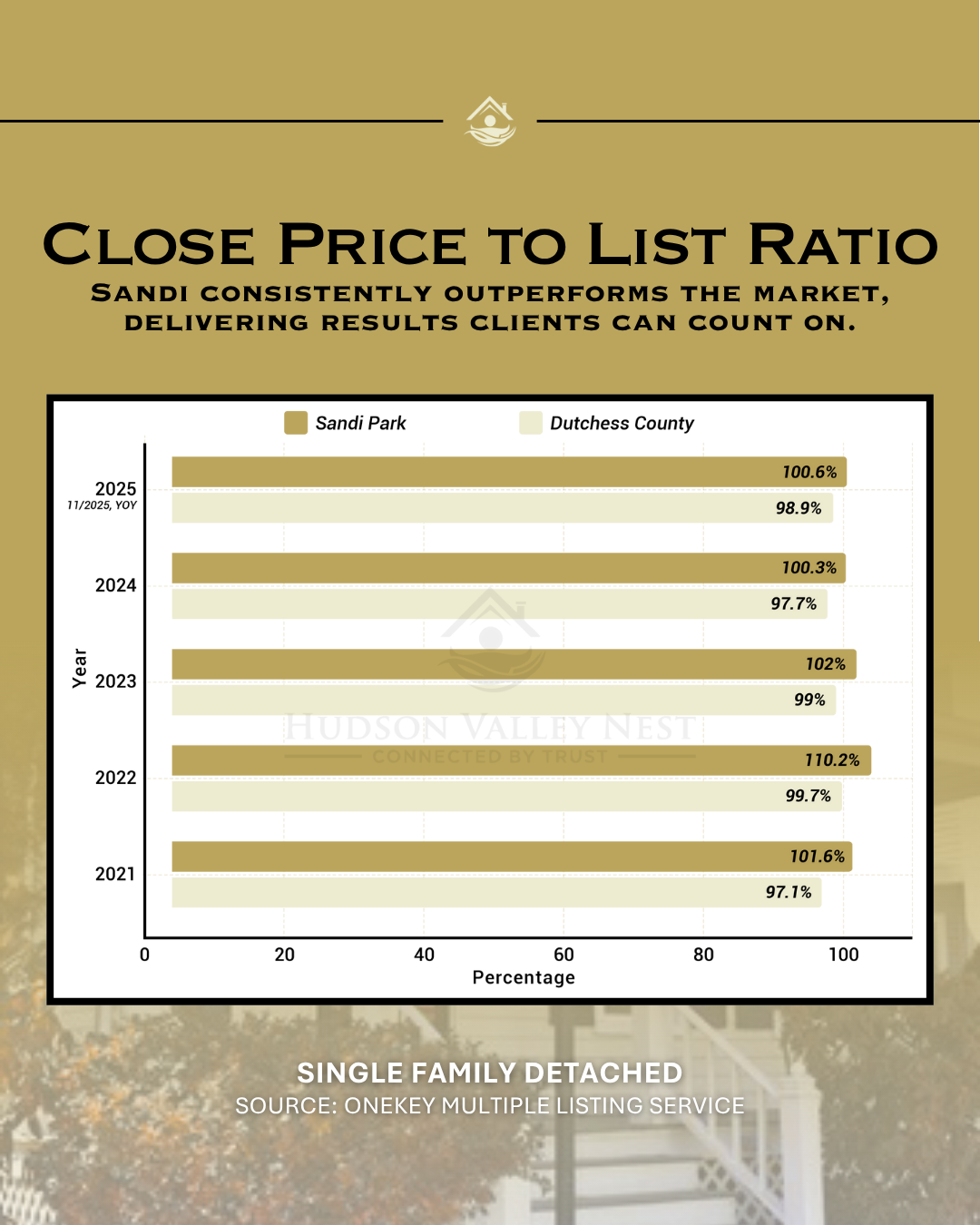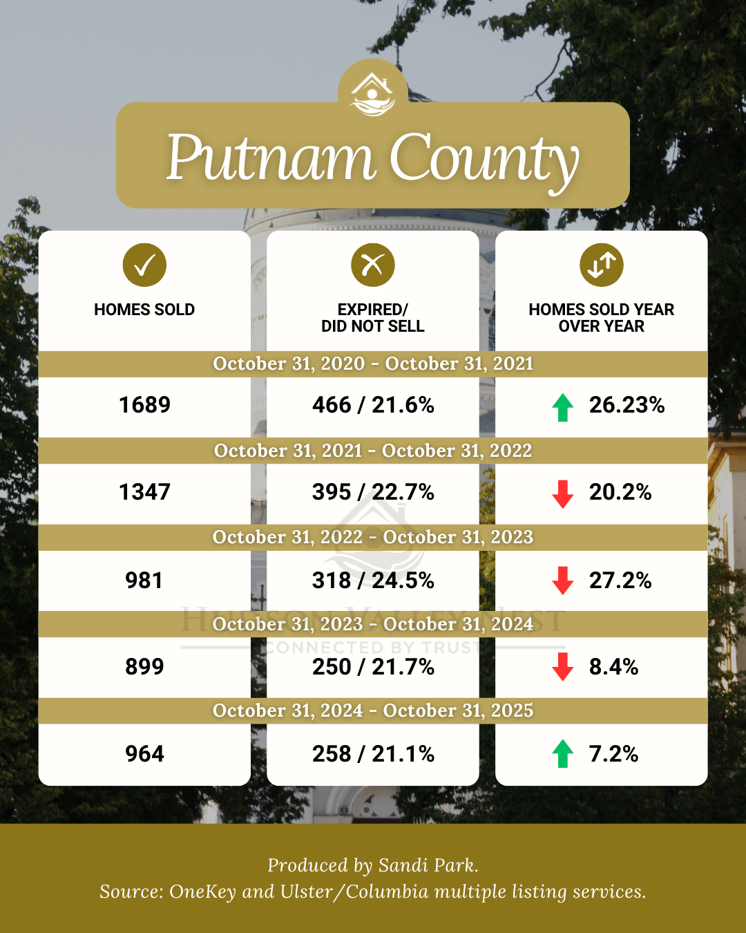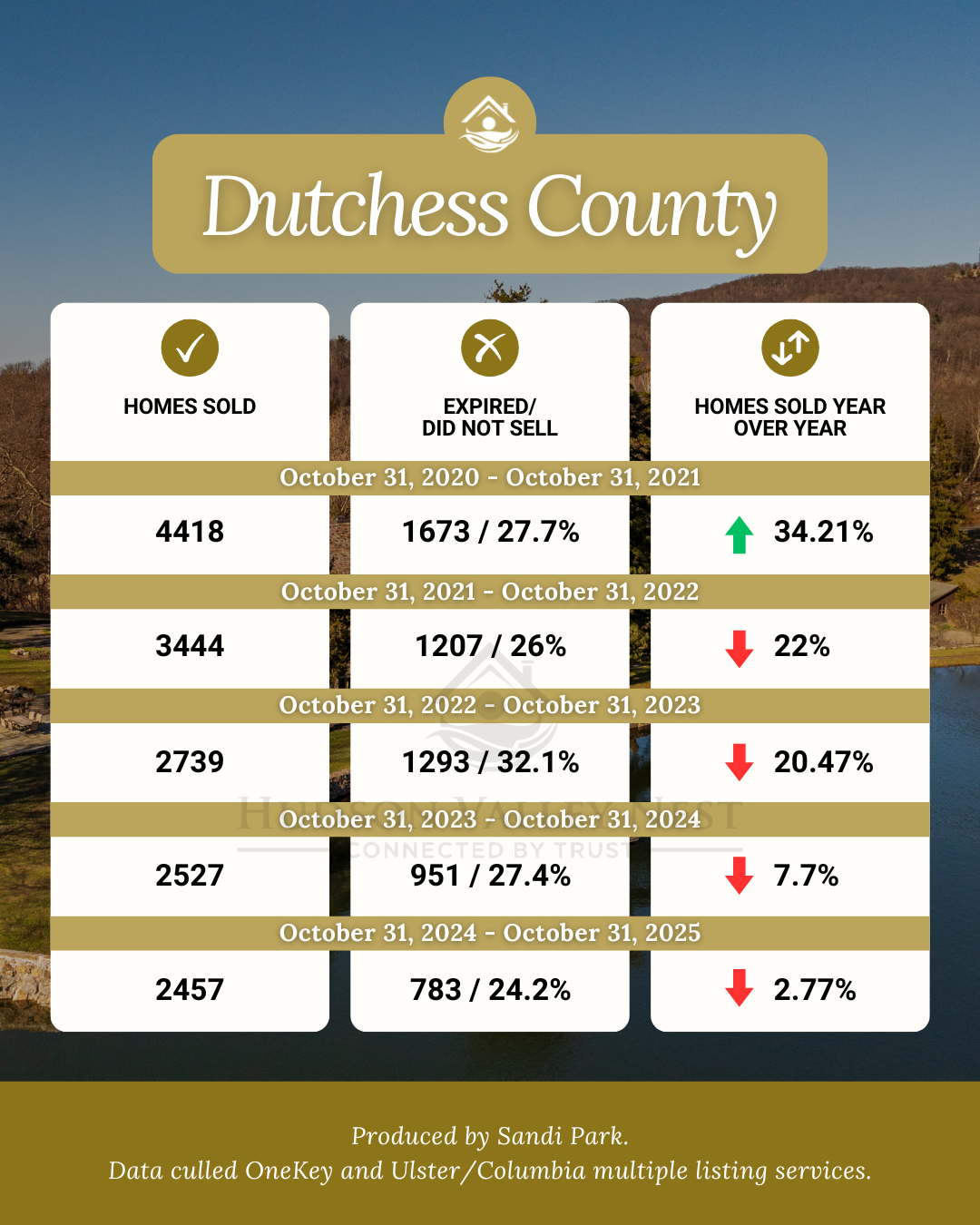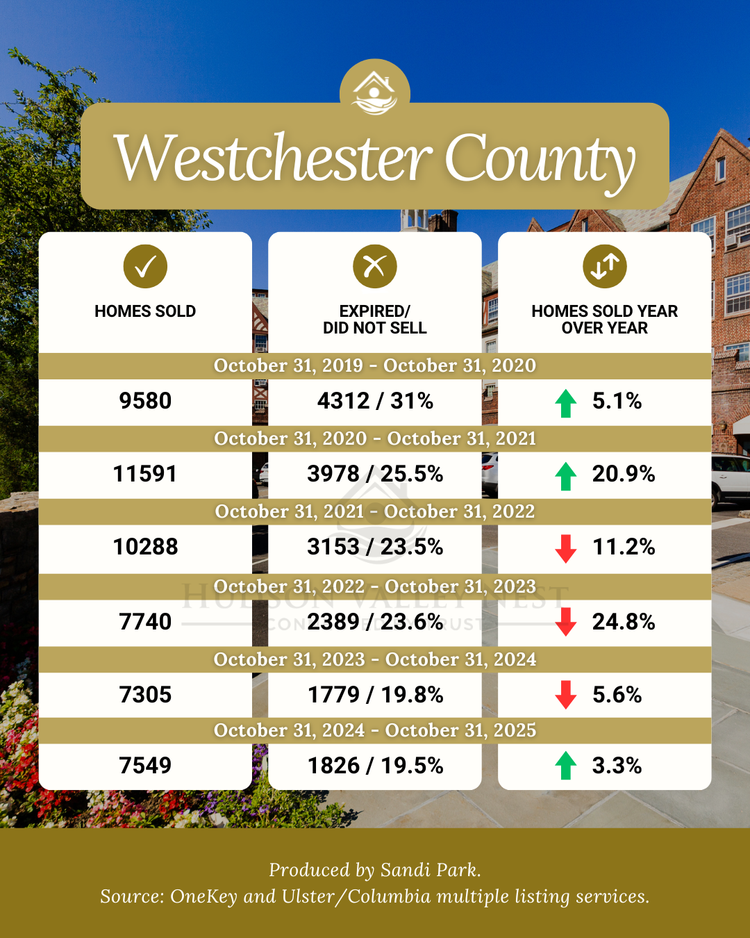 Of the five counties analyzed here, all are still in overall seller's market conditions with the exception of Ulster County, which is now an overall balanced market. Westchester, Putnam and Ulster County have all increased in sales with Dutchess and Orange realizing a decrease October 31, 2024 vs. October 31, 2025 YOY.