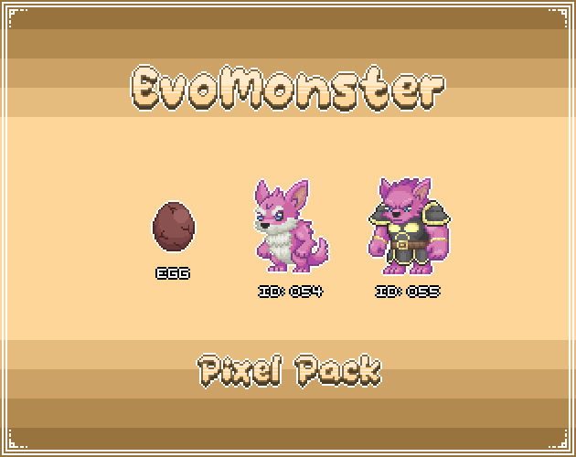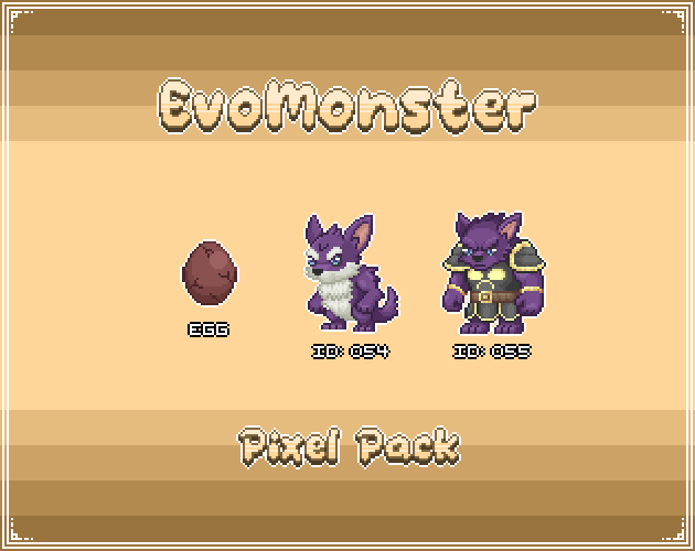 Get your EvoMonsters and start making your game. Each EvoMonsters Pack contains a monster with its own egg and evolutions, perfect for turn-based RPGs, JRPGs, and monster-capture games.
