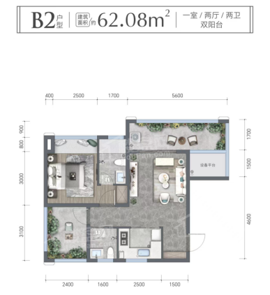 1室2厅2卫