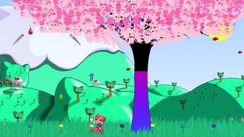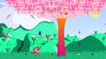 The Colorful Tree is truly unique and can only be found in Nekokunix. Hibiki has gone to play under the tree and is having fun collecting all the drops of paint falling from it.