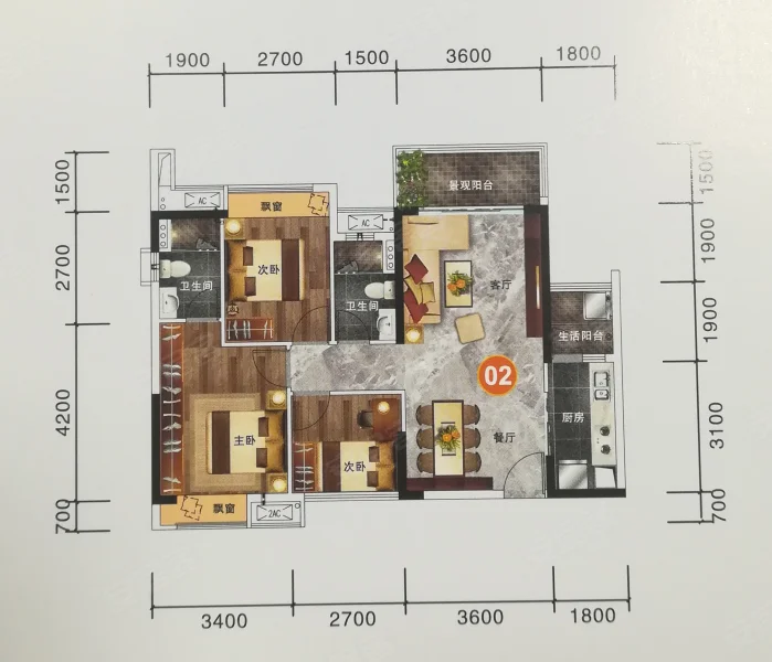 3 室 2 厅 2 卫