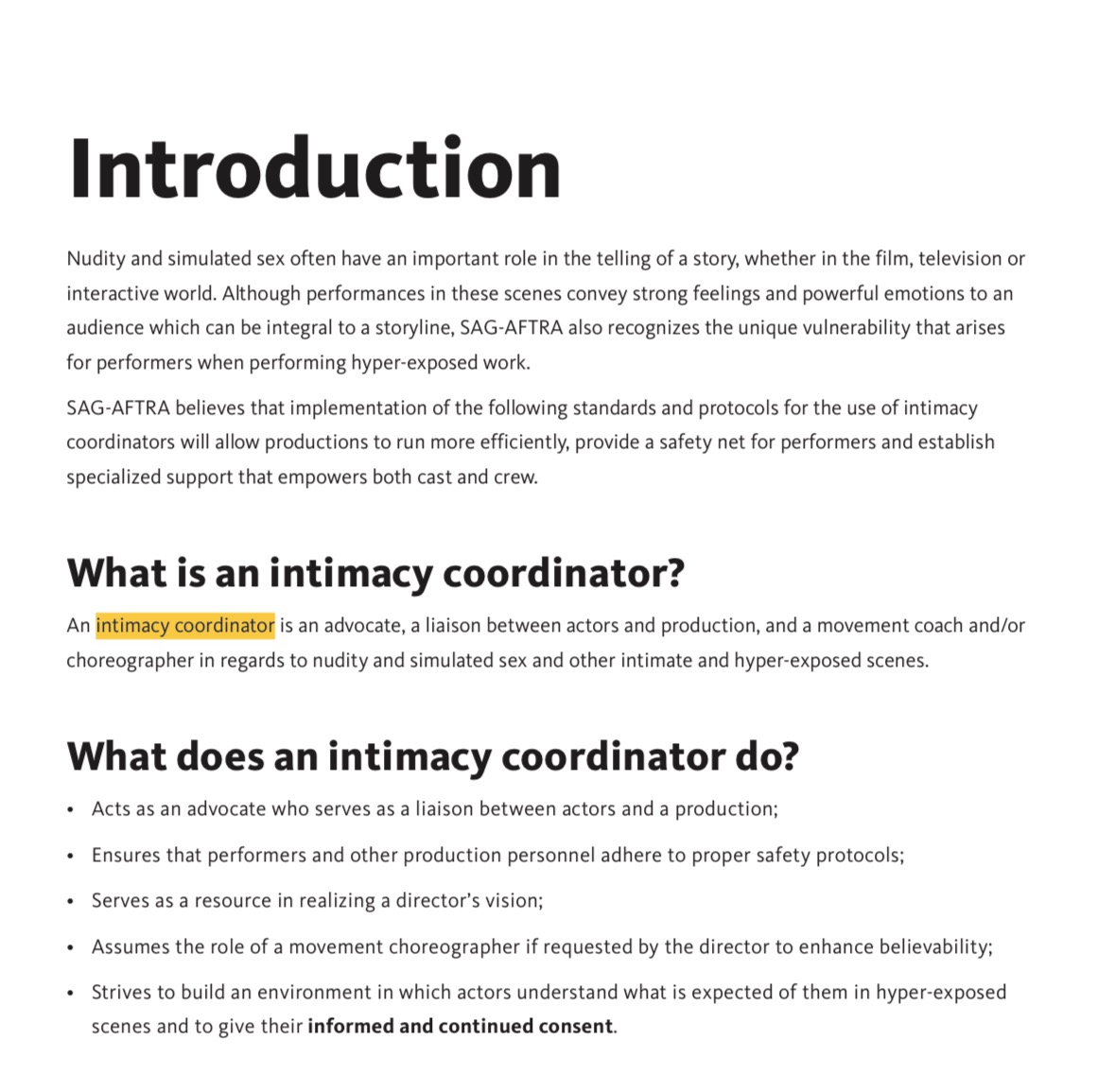 Training in intimacy coordination: