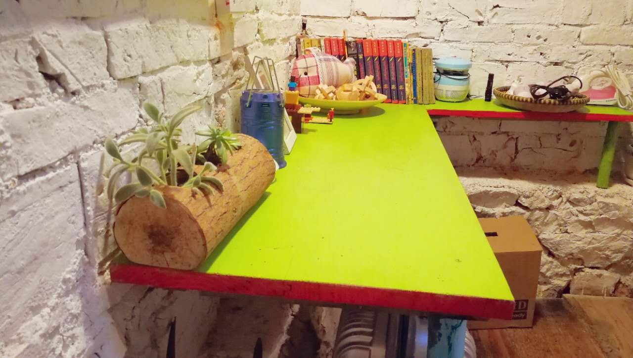 木房大原木书桌(匠舍藏书涉及艺术设计书法绘画历史文献戏剧共计百余册)。