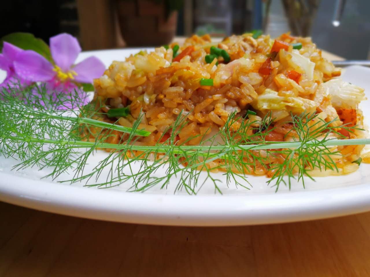 厨房可以自助开伙,院子蔬菜免费,禽肉提前预定,可买到土鸡鸭猪牛羊。随手摘几颗番茄,一小撮韭菜,一根黄瓜、外加两各土鸡蛋就可以做一份简单又营养的午餐。