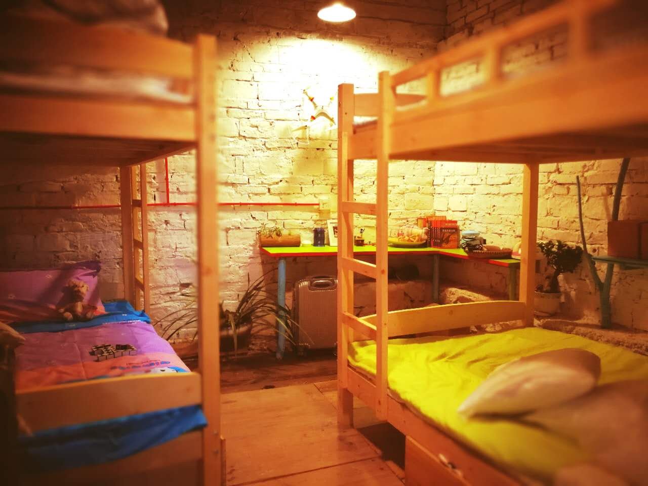 砖房是专门为驴友和年轻学生准备的国际青旅房,四床铺,每晚60元一位,可根据要求铺设白色或者为家庭旅行的孩子铺设卡通床褥。完整保留了三面砖墙 历经四次涂白(立邦环保涂料),每铺配备台灯及风扇,一键摇控蓝牙音响灯泡。