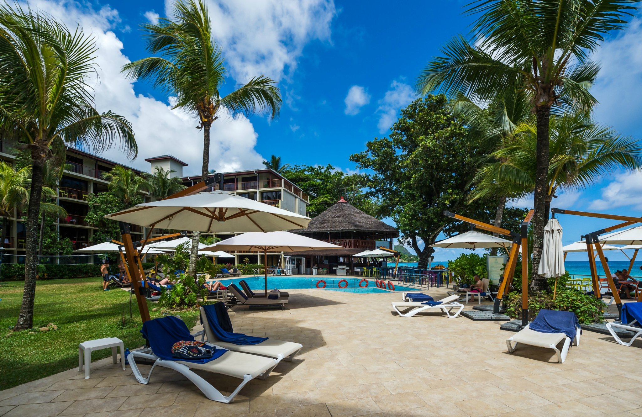 你们还可以在泳池中,一览不远处的蓝天白云、碧海沙滩。