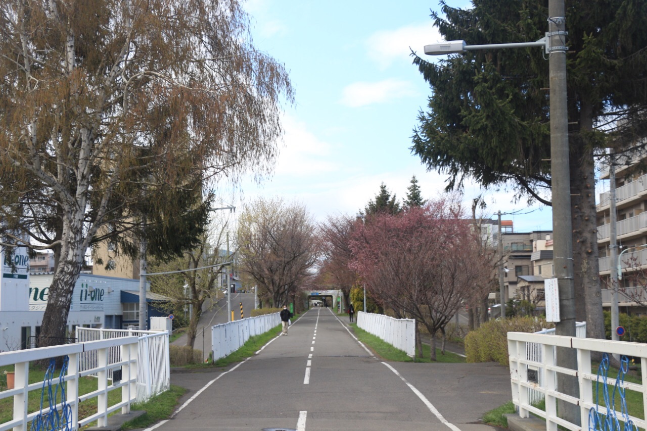 然后就是做大巴回札幌。到了札幌先去公寓放行李,然后就走去札幌巨蛋,看棒球。这个季节北海道的樱花还没大面积开起来,不过蓝天,白天,干净的路和一点点粉,也是很美腻的