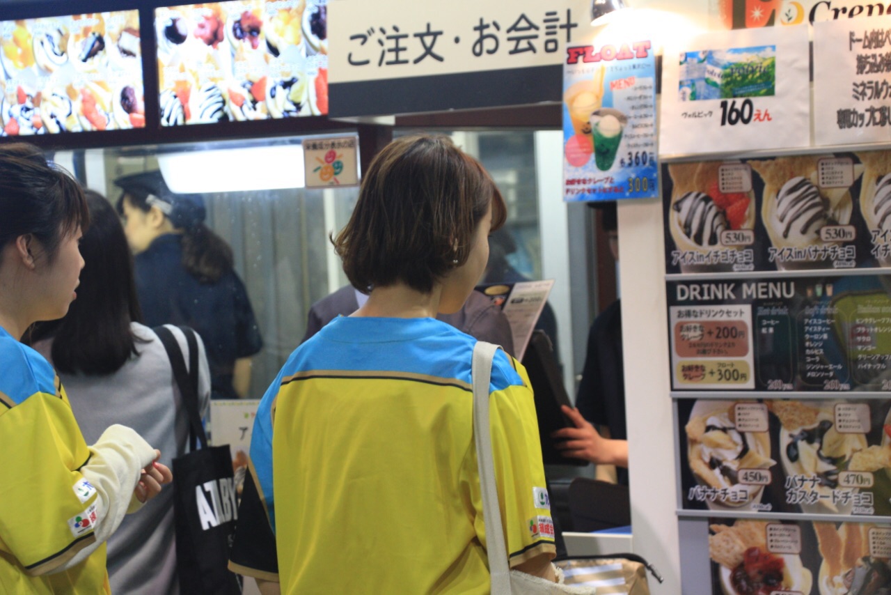 进去之后先买食物。日本的营销不服不行,里面像个美食街,什么类型的吃的都有。