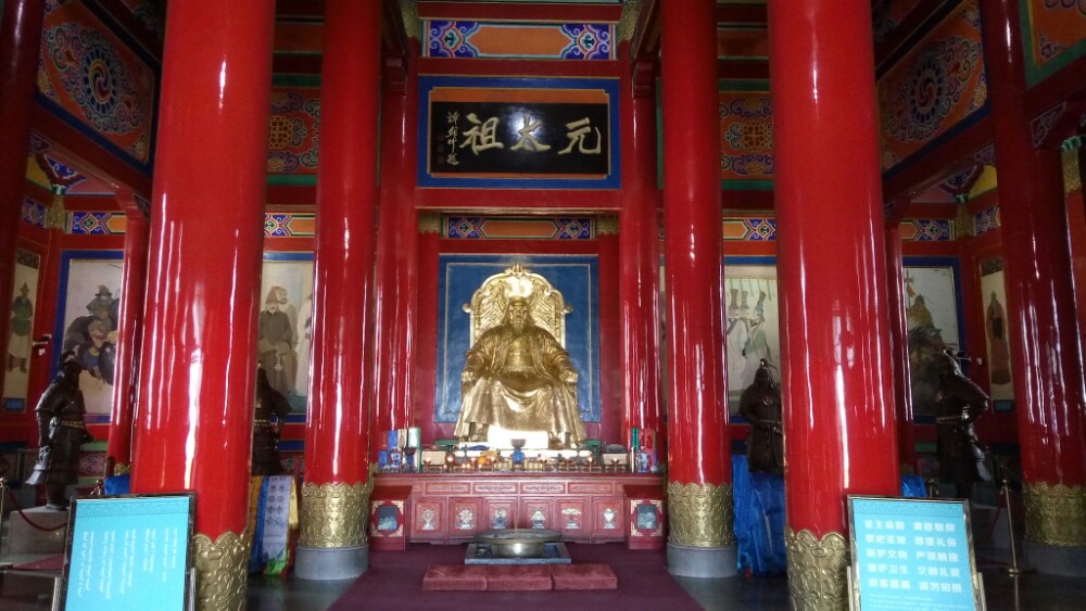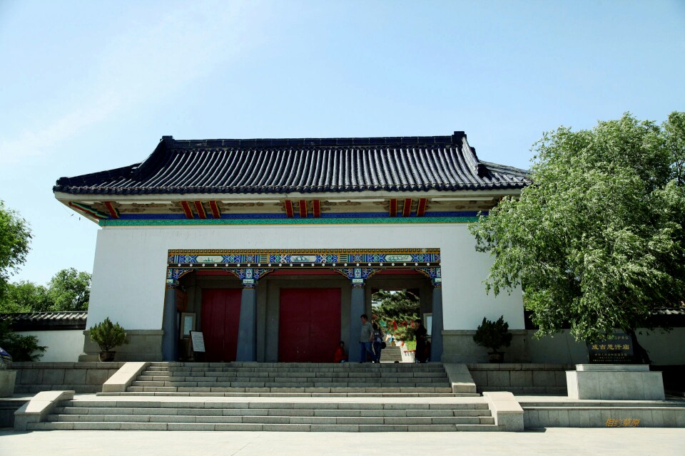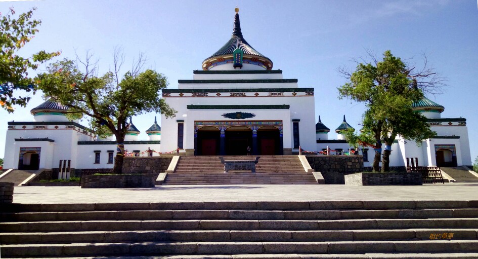 #南航西游记#游览乌兰浩特成吉思汗庙成吉思汗庙于1940年兴建,1944年竣工。占地6.8万平方米,是全国唯一的融汉、蒙、藏民族建筑风格于一体的庙宇。庙宇为现代砖水泥结构,四面建有围墙,正南北向。南墙正中开设高大的山门,两侧建有小便门,自山门进入院内,攀登81级花岗石阶梯,直通至大殿前。大殿由正殿和东西配殿组成,主殿与配殿间有廊相通。正殿中供设高2.8米、重2.6吨的成吉思汗青铜塑像。