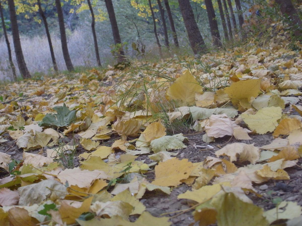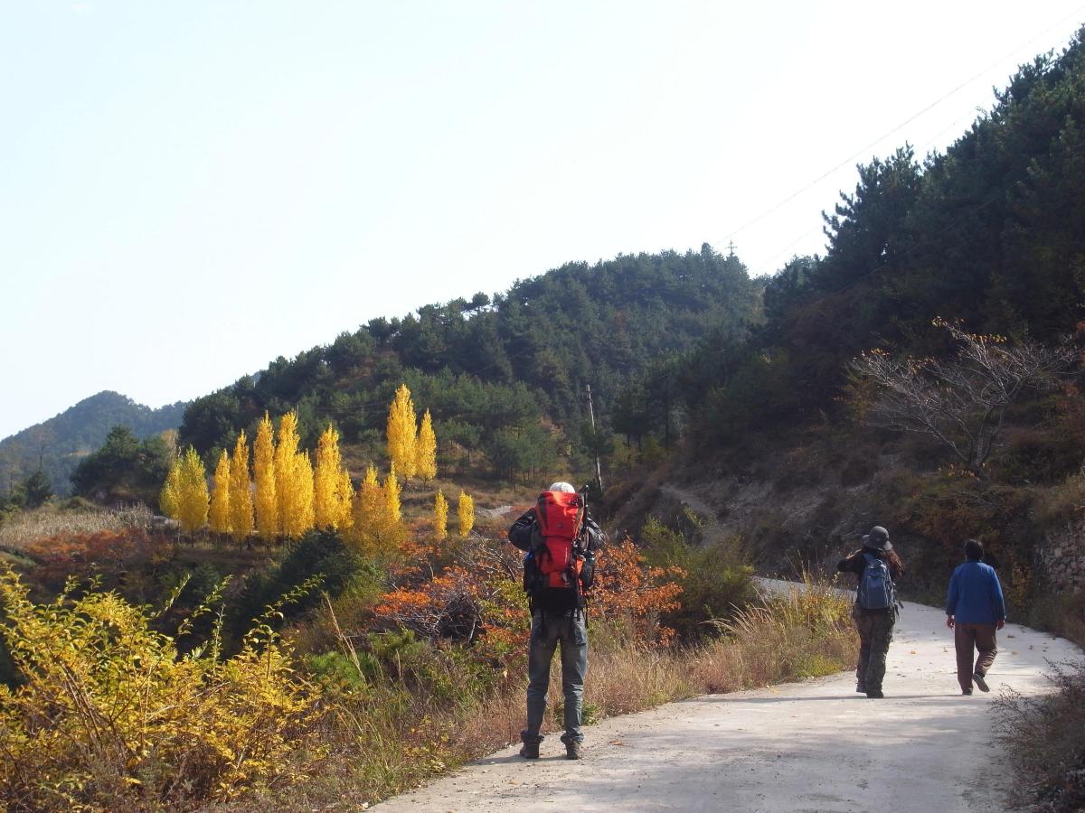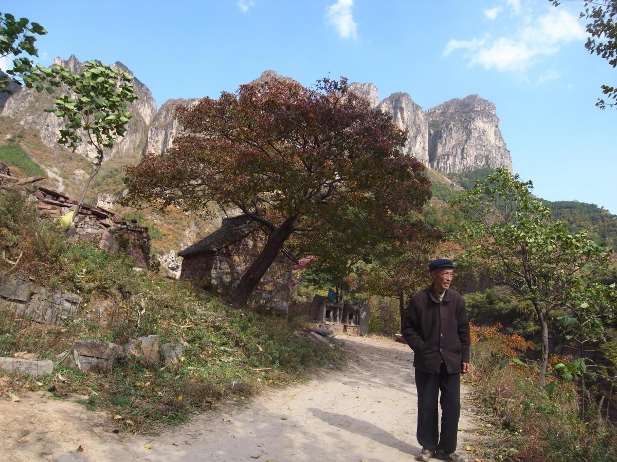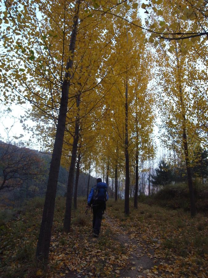 松针,岩石,碎石,落叶。这是去郭亮的路上铺盖的东西。难度其实也不大。终于将拖大伙儿的后腿的担心放下。栓保家给找的向导大娘在前面带路,风吹拂着我们,秋日的暖阳照耀着或者从树叶间穿射着我们,连绵不绝的山延伸着我们脚下的路,满眼的明艳的色彩。恩。爱极这样的平静的时光,似乎重叠在一棵树上。忽然想起海子的“太阳的山顶埋葬/诗歌的尸体--千年王国和我。”其实我一直以为是“太阳在山顶埋葬”继续自以为是,然后我看到的就是诗歌,是千年古老腐朽的王国以及人后的那个孑然一身行走于大地的我。