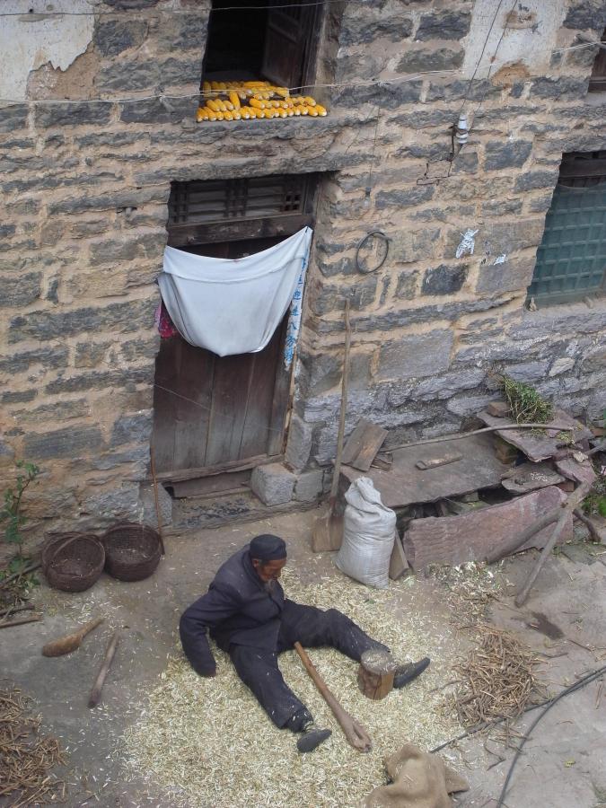 赞一个给草姐姐。她在路上联系好了网上很受欢迎的司栓保,于是我们一到罗姐寨,便见到栓保的父亲站在村口的树下等待我们。老人站在阳光下,拉长的影,微笑的皱纹。似乎在等自己孩子远归的亲切的老人。突觉温暖,辉县来的车上对这里人的偏见一扫而光。