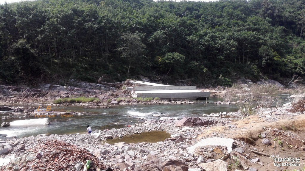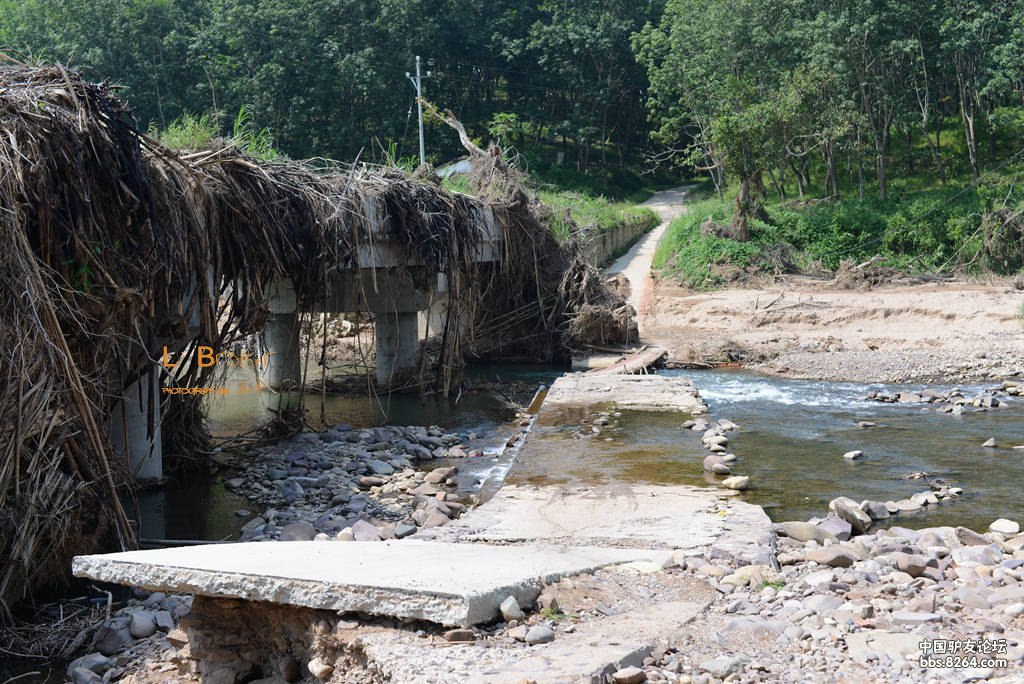 最后一座断桥更加惨状,桥面全冲到下游 <br> 也让桥墩玩出轨!