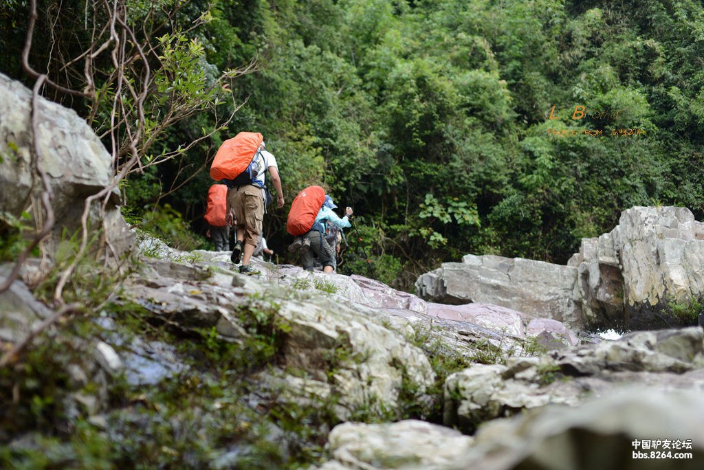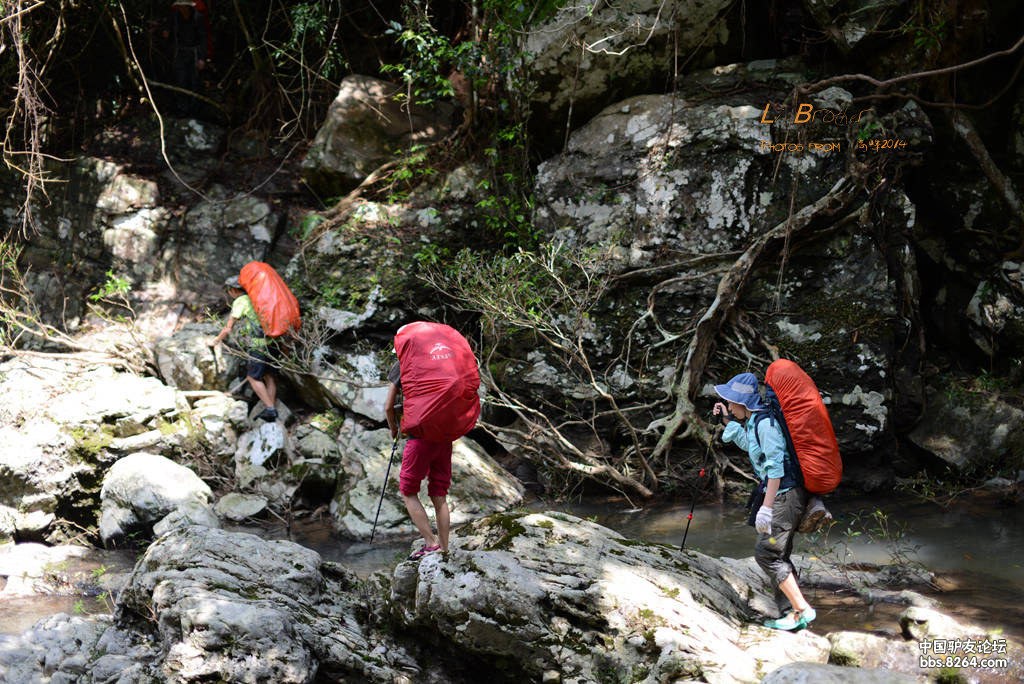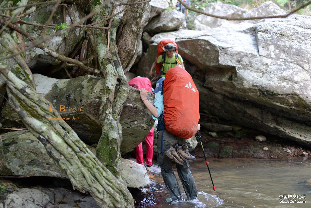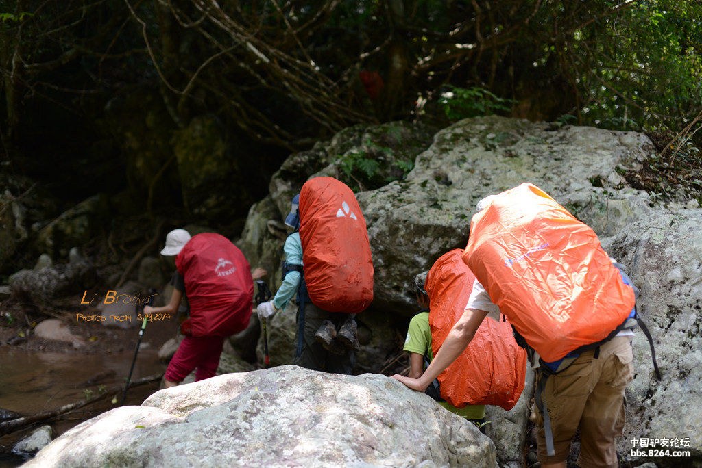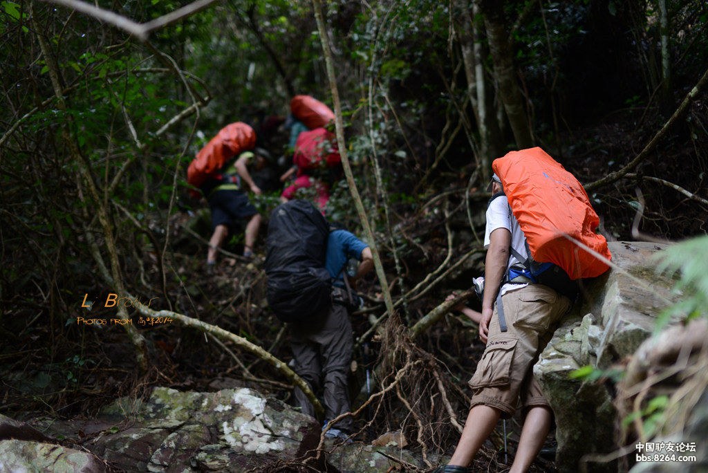 又一悬崖挡道最后上绳带,把背包一个个往上接送,最后徒手攀岩