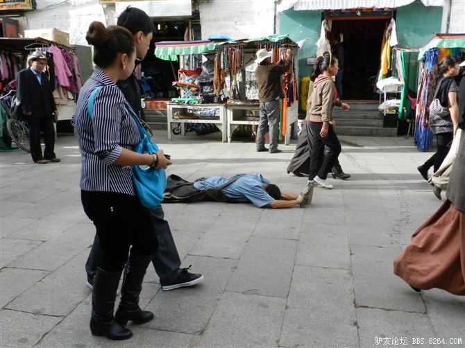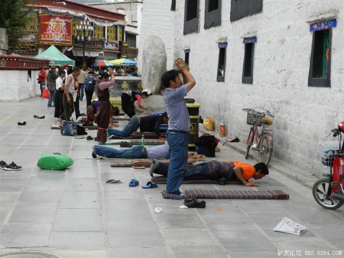 寻到了大昭寺,门口有很多朝拜的人,一遍又一遍虔诚的跪拜。