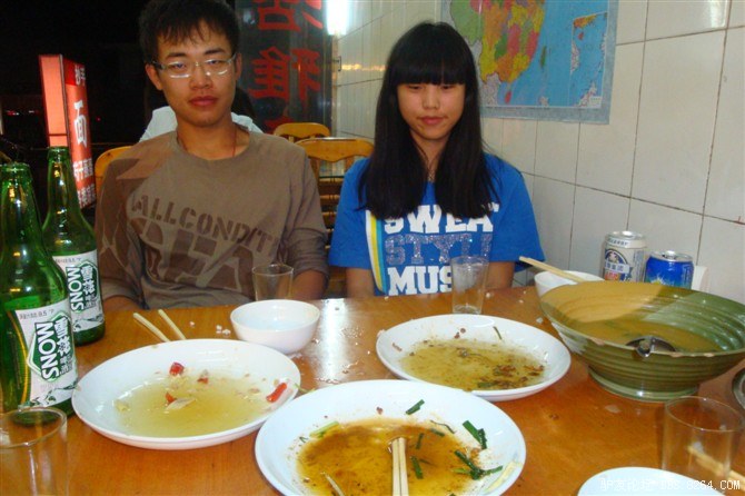 这是曾惜和小胡,两个猛男纸。每天都是他们两冲在最前面为我们抢房间。呵呵~~晚上去了旅店老板推荐的夜市吃火锅,不够辣哦。失望了。