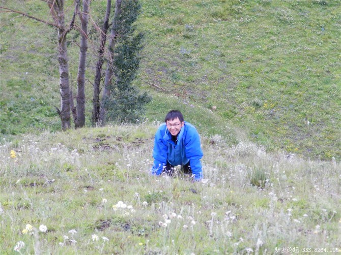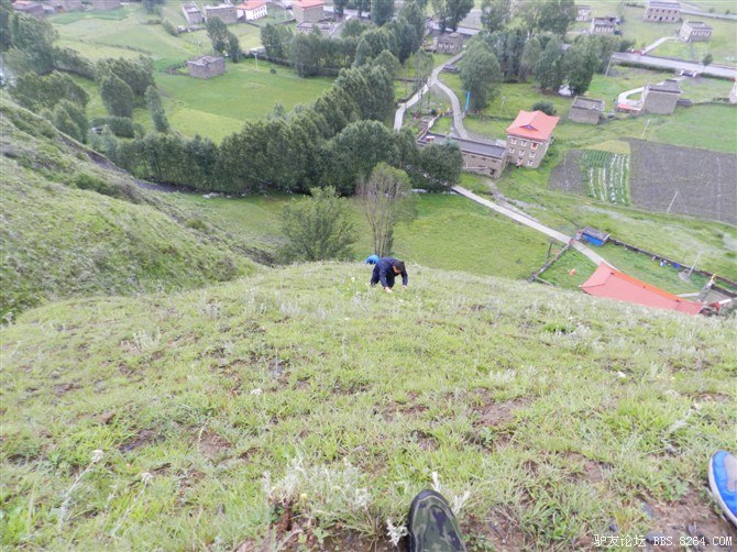在高原上爬山是一件很累的事情,而且很恐怖,因为真的是在爬了,陡的地方稍不留意都会滚下去,我们胆子真大,呵呵,剩惜惜哥一人在最后面,因为,因为,因为他竟然穿着拖鞋就来了。。