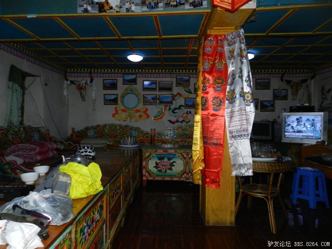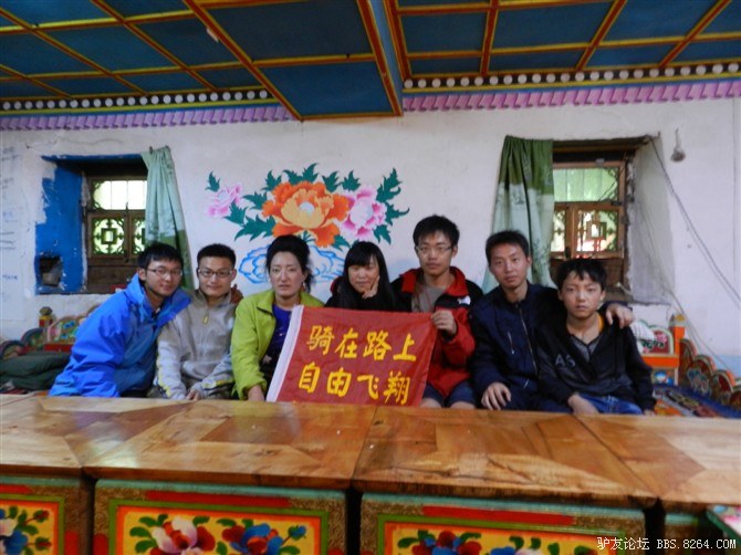 我们在一个臧家旅馆住下,藏族姐姐很热情,看我们全淋湿了,急忙让我们去洗澡。我第一个冲进去,舒舒服服的洗了个热水澡,换好衣服。感觉像是重生了。 <br> 放好行李后,冲了一大碗板蓝根,大家轮流喝,感觉真好。