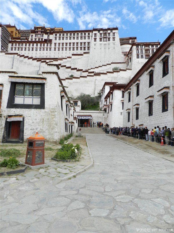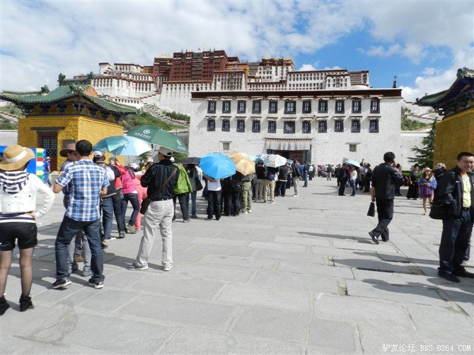 晚上9点到布达拉宫门口排队买票。 <br> 2个人轮流换,其余的人在旁边的网吧上通宵,等待接替。 <br> 我觉得太夸张了,从晚上9点排到第二天早上9点。 <br> 先是小熊和惜惜哥排队,排到四点,小胡和治治去换他们班。