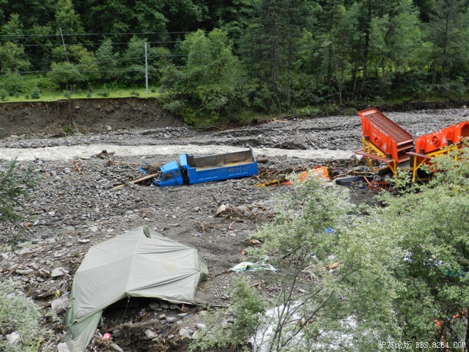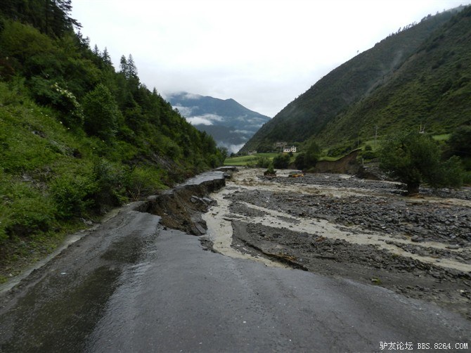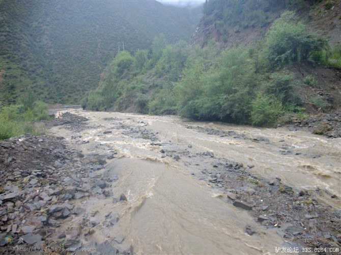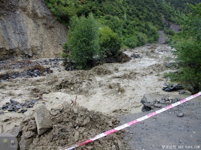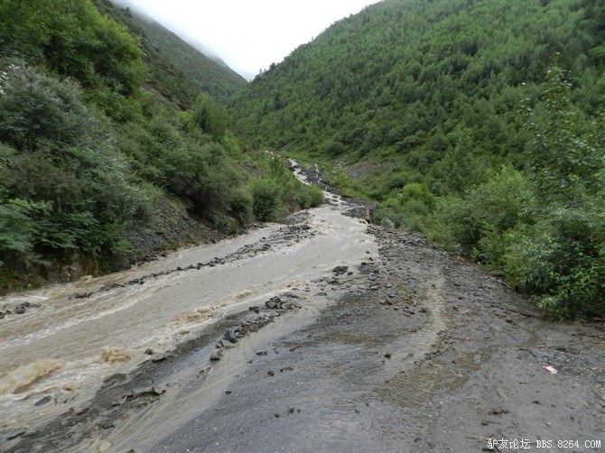 走了没多长,又遇到了一处水毁路,旁边已经塌方,水流裹杂着石头浩浩荡荡的从山沟往下冲。