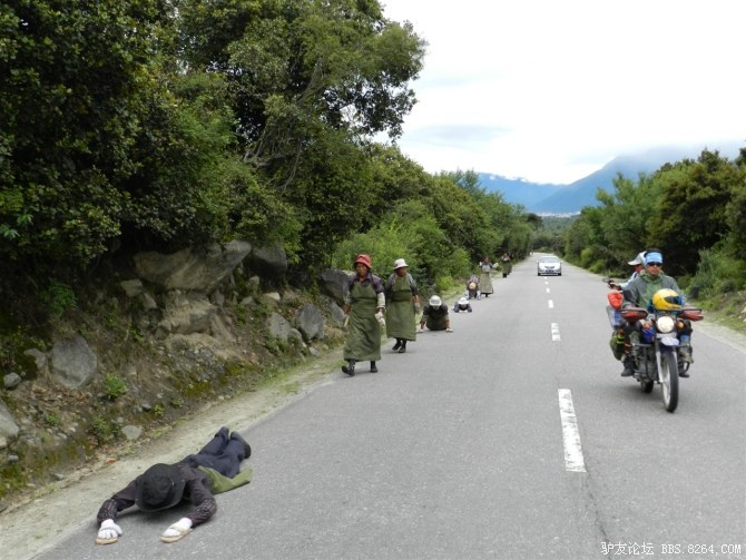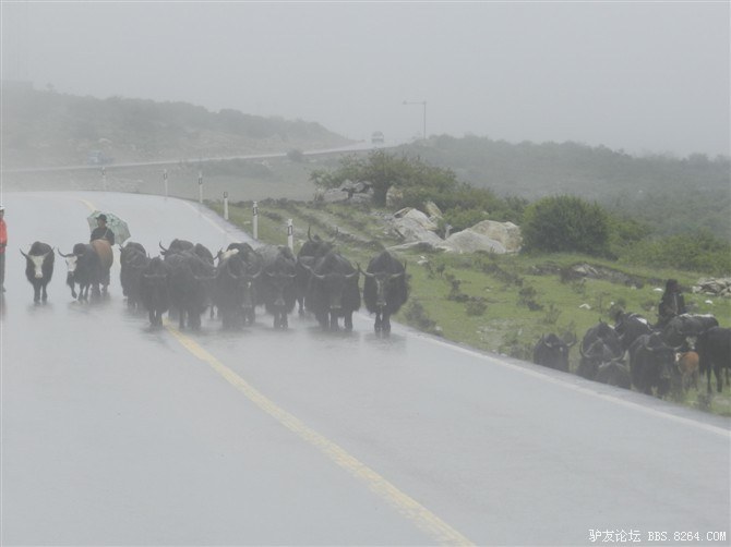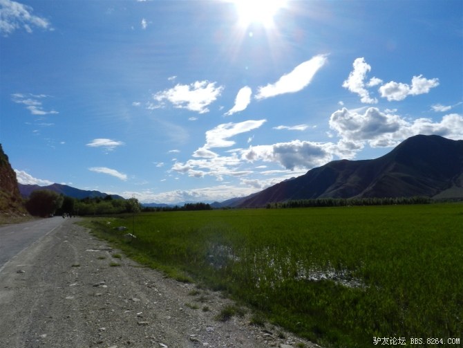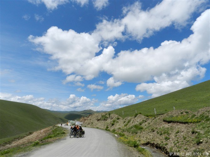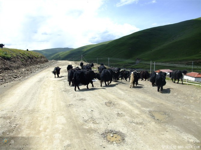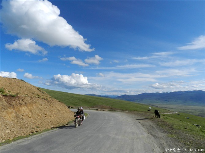 一路上,看见了几辆飞驰而过的摩托车,车上的藏民亲切的和我们喊着“扎西德勒”。 <br> 治治就说,看吧~怎么不能过,人家摩托车都能过,过去这么多辆都没有掉头的。我们肯定过的去。 <br> 他说的信心满满,可是我在想,也许人家是回家了呢- -不好意思打击他。