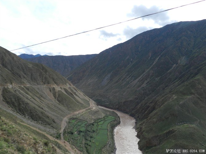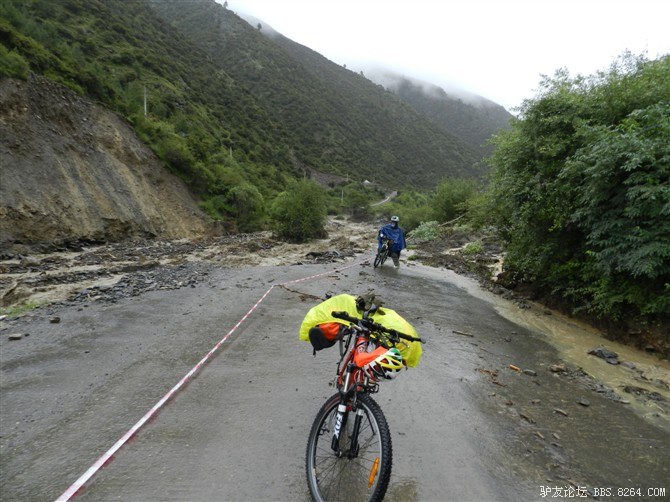 这个地方被人用铁线拉起来了,车上的藏民告诉我们,前面塌方了,不能往前走。但我们还是拉开铁线骑了过去,也许这就叫年轻。