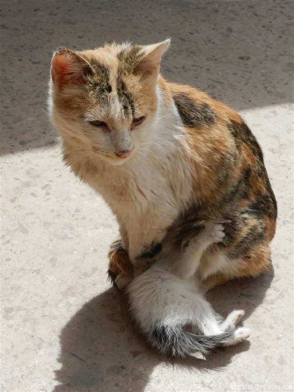 有爱的猫猫,一动不动,任我们一堆人围着。因为下面有只小猫猫在吃奶。 <br> 阿~~~布达拉宫的猫猫都闪烁着母性的光辉阿~太可爱的,小猫吃奶的时候爪子还要弹几下。哈哈~ <br> 最近忙于工作阿,中午休息时间赶紧再来发几张拉萨的美图~呵呵~