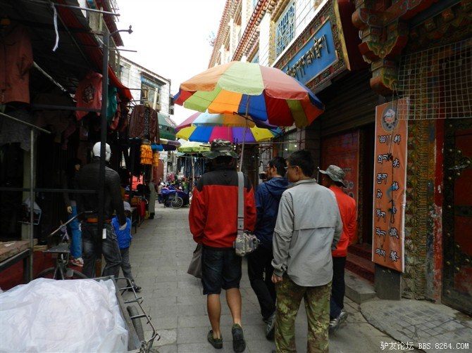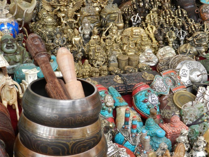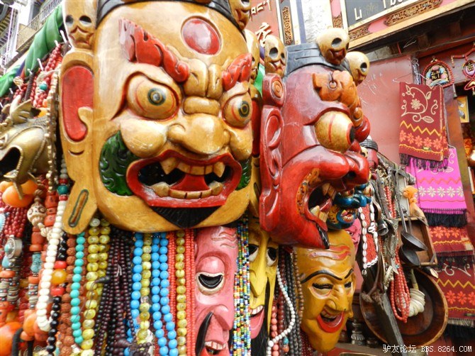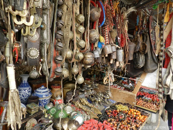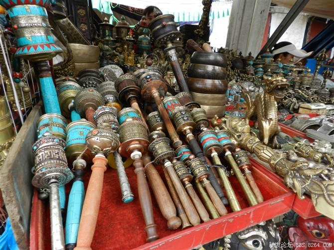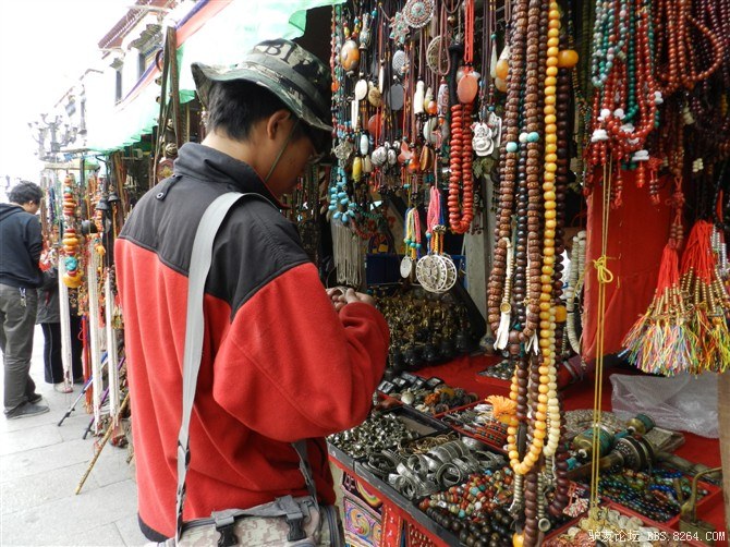 华丽丽的店铺 <br> 去逛八角街,买了很多纪念品。路上有烧香的白塔,朝拜的信徒, <br> 还有说着别扭的普通话与我讨价还价的藏族商人。