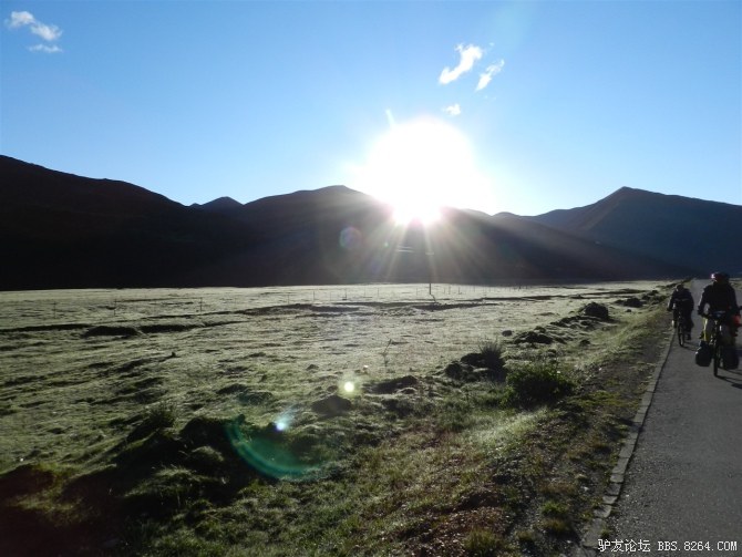 微亮的天空,带着神秘的色彩吸引着我们,拉萨,就在176km外了。