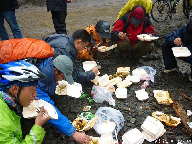 走完烂路,大家都忙着洗车,泥巴太厚了。