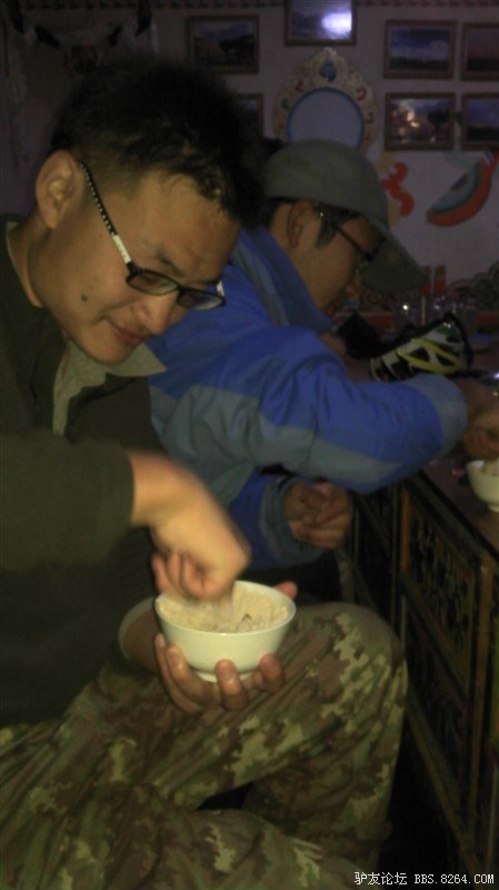 大家幸福的吃着青稞面。相比1个多小时前的情景,满足阿~